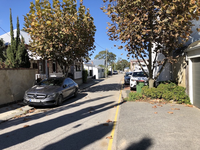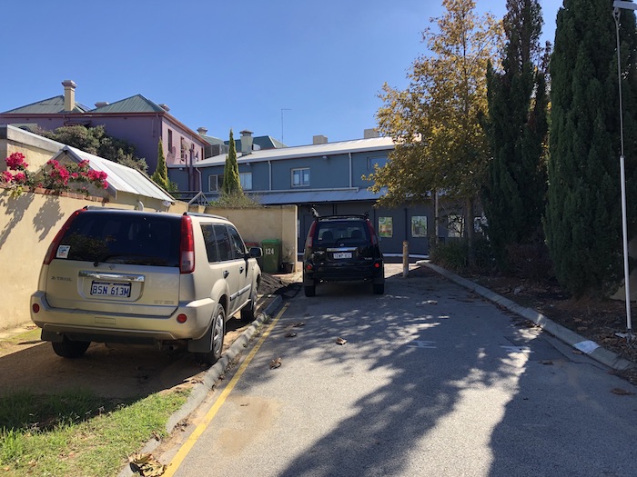 At its northern end it is blocked by steel poles, allowing only pedestrian access to the bottleshop drive-through of the Beaconsfield Hotel, so that a car can park in the middle of the street.
