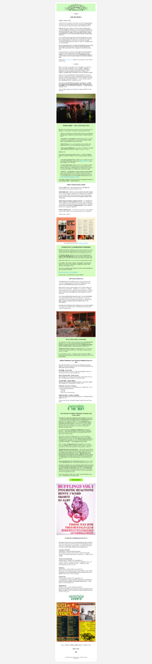 - Got a band connection? Want to help shape the sonic life of the club? Get involved with bookings! Drop a line to gigs@freobuffclub.org and help bring great acts to our stage.