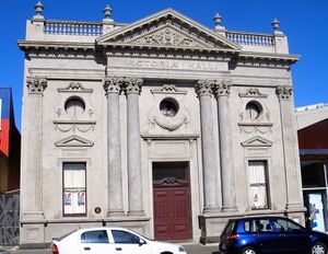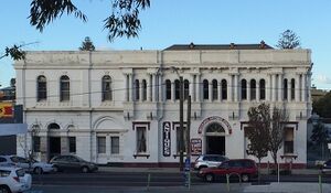 Victoria Hall. {From cinematreasures.org:] Victoria Hall opened on 28th September 1897. Victoria Hall showed pictures in the winter months (dates of opening and closing unknown), when the Olympia wasn’t open. The hall was used by the Salvation Army (opening in 1970s or 1980s?) as an op shop, until they moved out (to a new location when the stage was declared unsafe (in the 1980s or 1990s). The hall was renovated and used by the [[../clubs/deckchair.html|Deckchair Theatre]] Company (until they closed down in (2012?) The hall is now used by Beaumonde Catering [?] and the Fly By Night Musicians Club (after they moved out of their previous building). Victoria Hall has been given National (Australian) Heritage listing.