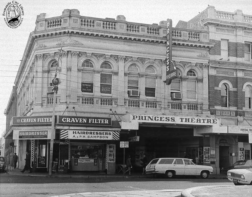 The Princess Theatre was in Leake Street. The entrance was through the (later) two-storey section of Princess Chambers on the corner of Market Street. The cinema was built in 1912, and closed in 1969. The building remains, and the auditorium is used for storage. The internal fabric of the building is much the same as when it was a cinema, including some decorative plasterwork. The entrance arcade was through where Kakulas Sister now operates, and the 1930s arches and wallpaper can still be seen in the store.