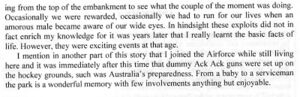 I mention in another part of this story that I joined the Airforce while still living here and it was immediately after this time that dummy Ack Ack guns were set up on the hockey grounds, such was Australia’s preparedness. From a baby to a serviceman the park is a wonderful memory with few involvements anything but enjoyable.