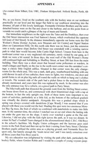 The following extract is attached to: David Hutchison A History of Fremantle Park 2009.