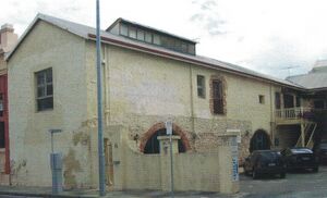 No. 6. [[../people/moorewd.html|W.D. Moore]] bought the property in 1864. Possibly in partnership with [[../people/marmion.html|W.E. Marmion]], he established the Diamond Flour Mill on the site in c. 1870. That mill was burnt down and a new mill built in 1876, and known at that time as the Phoenix Mill. The property was bought by Fremantle Milling Company in 1891 and renamed the Eureka Mill. The company moved to Cottesloe in 1905. In 1950 the former mill and warehouse were used by Westralian Farmers Ltd as a woolstore. In the 1980s the building was altered to house a restaurant with accommodation on the upper level, and in the 1990s the former warehouse was converted to apartments. ([[../fremantlewalks/index.html|Hutchison]])